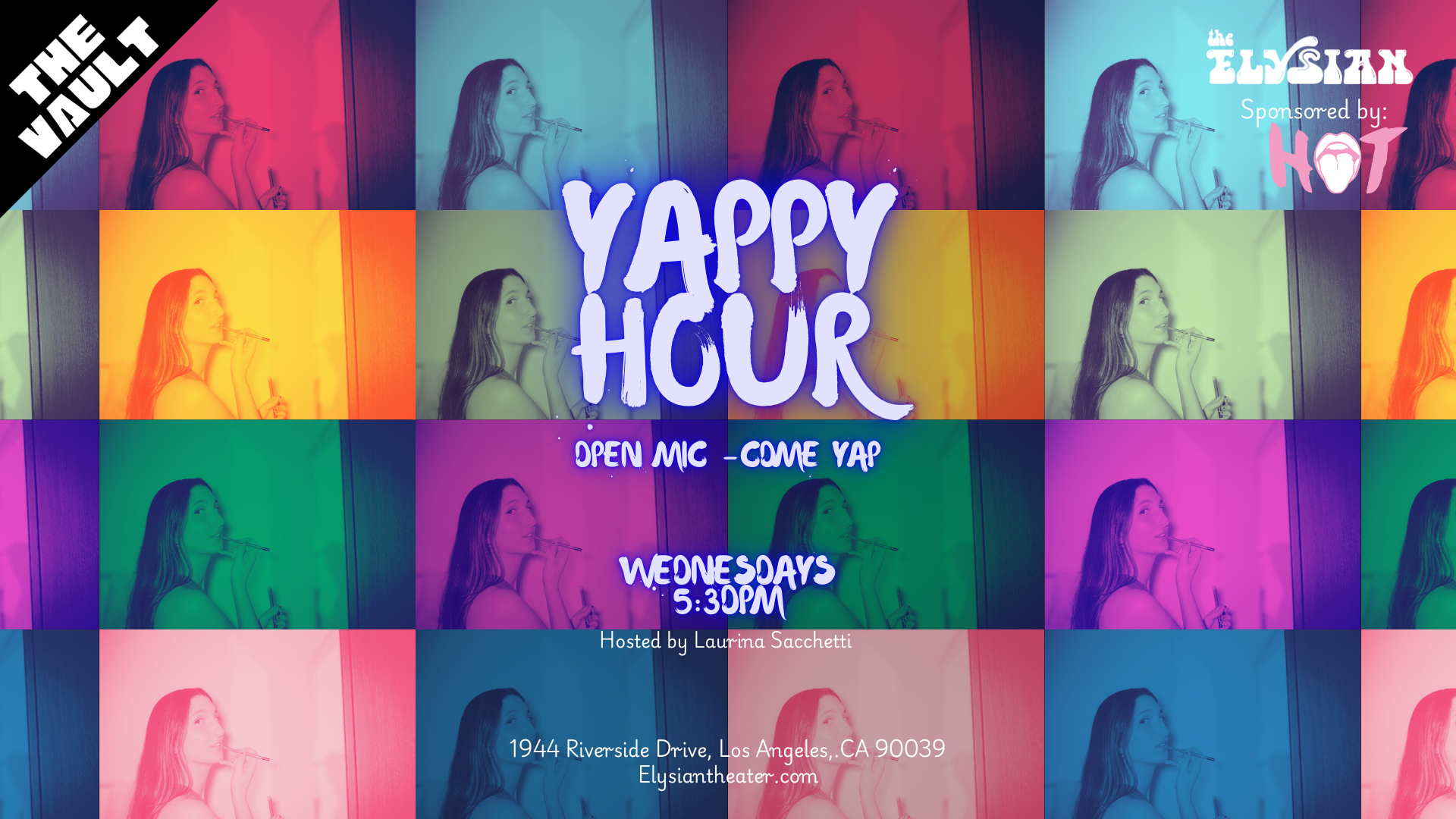 Hosted by Laurina Sacchetti, YAPPY HOUR is an open mic for all performers, comedy‑curious, and anyone with something to say come to YAP it out. Clowns, musicians, stand-ups, poets, YOU NAME IT!