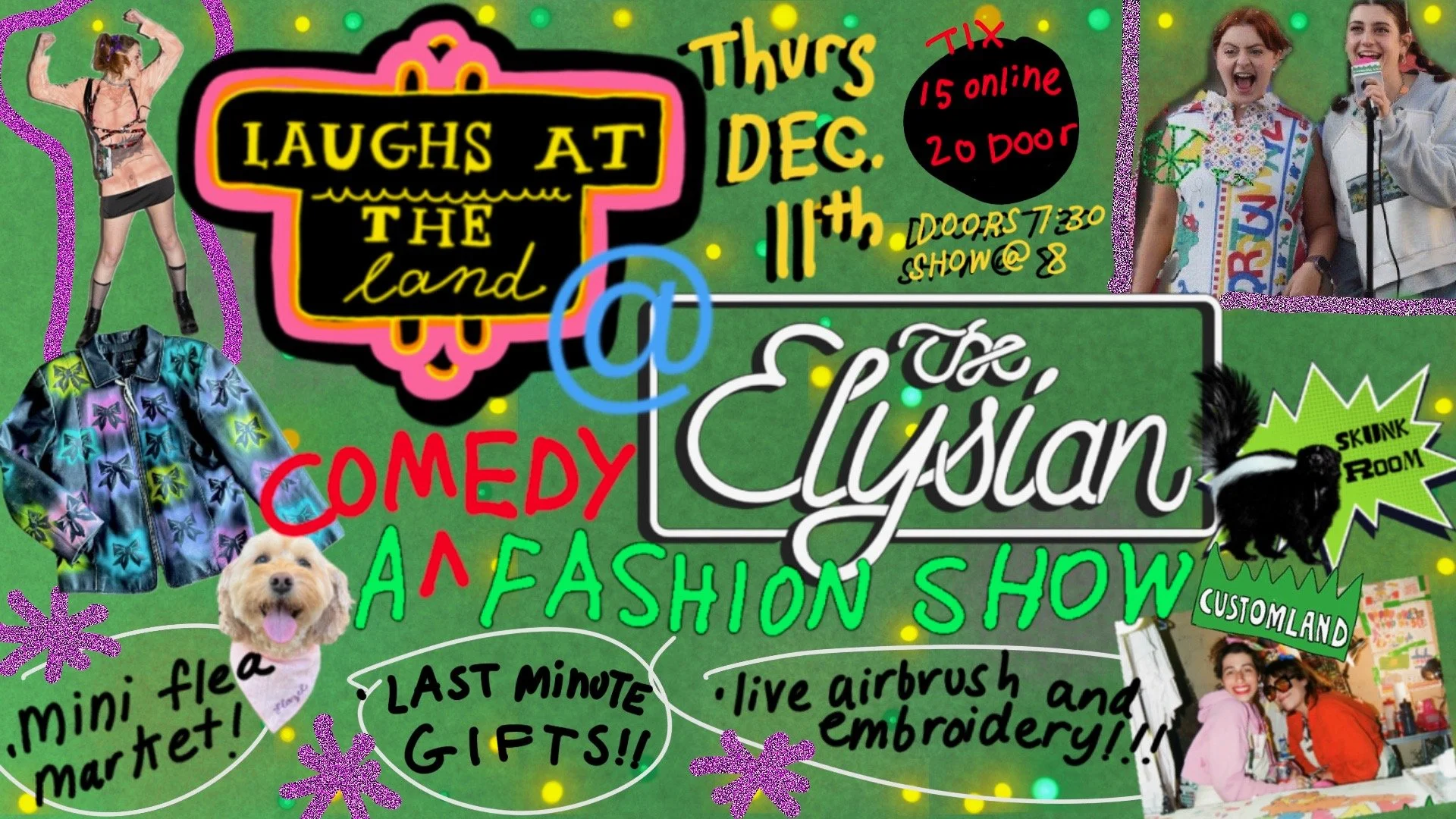 Laughs @ The Land is LA’s only Comedy Fashion Show (that we know of!!!) We style our performers head to toe in handmade upcycled looks from custom clothing studio Customland! This is our first time at The Elysian and we are thrilled to bring the store to you.