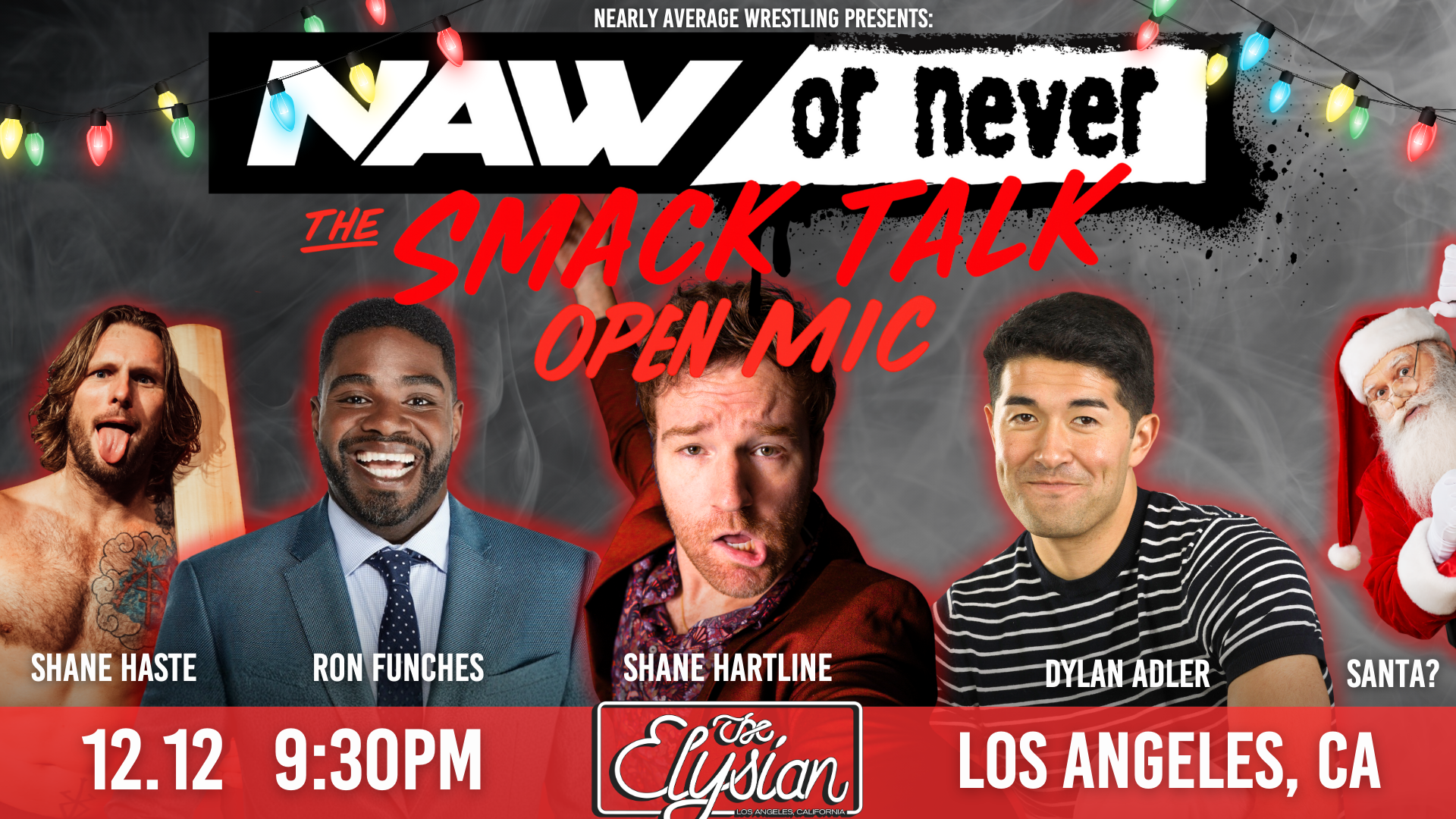 NAW or Never is a no-holds-barred comedy-meets-wrestling showcase where anyone can step into the spotlight and try to earn a spot on the Nearly Average Wrestling roster. It’s like if The Voice got bodyslammed by Pee-wee’s Playhouse. Contestants get 60 seconds to cut a promo, show off a character, or do whatever it takes to prove they belong. With surprise guests from WWE, AEW, and beyond, you never know who’ll show up or what will happen. The show is taped live — and like any great wrestling event, the chaos is very real.