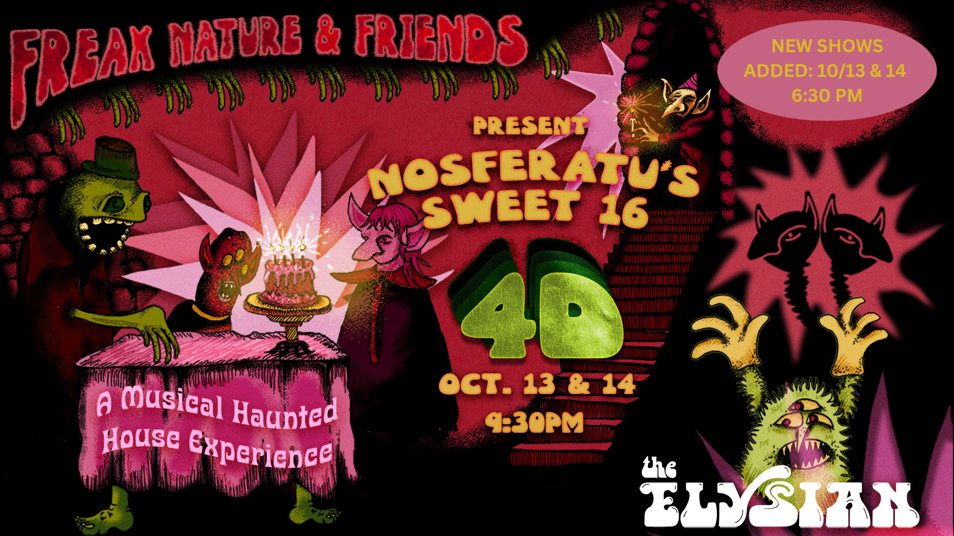 Back by popular demand and fully re-“vamped” since its first sold out run at the Elysian in 2023, you won’t want to miss Freak Nature’s one-of-a-kind haunted house experience & weirdo-pop giant puppet musical.
