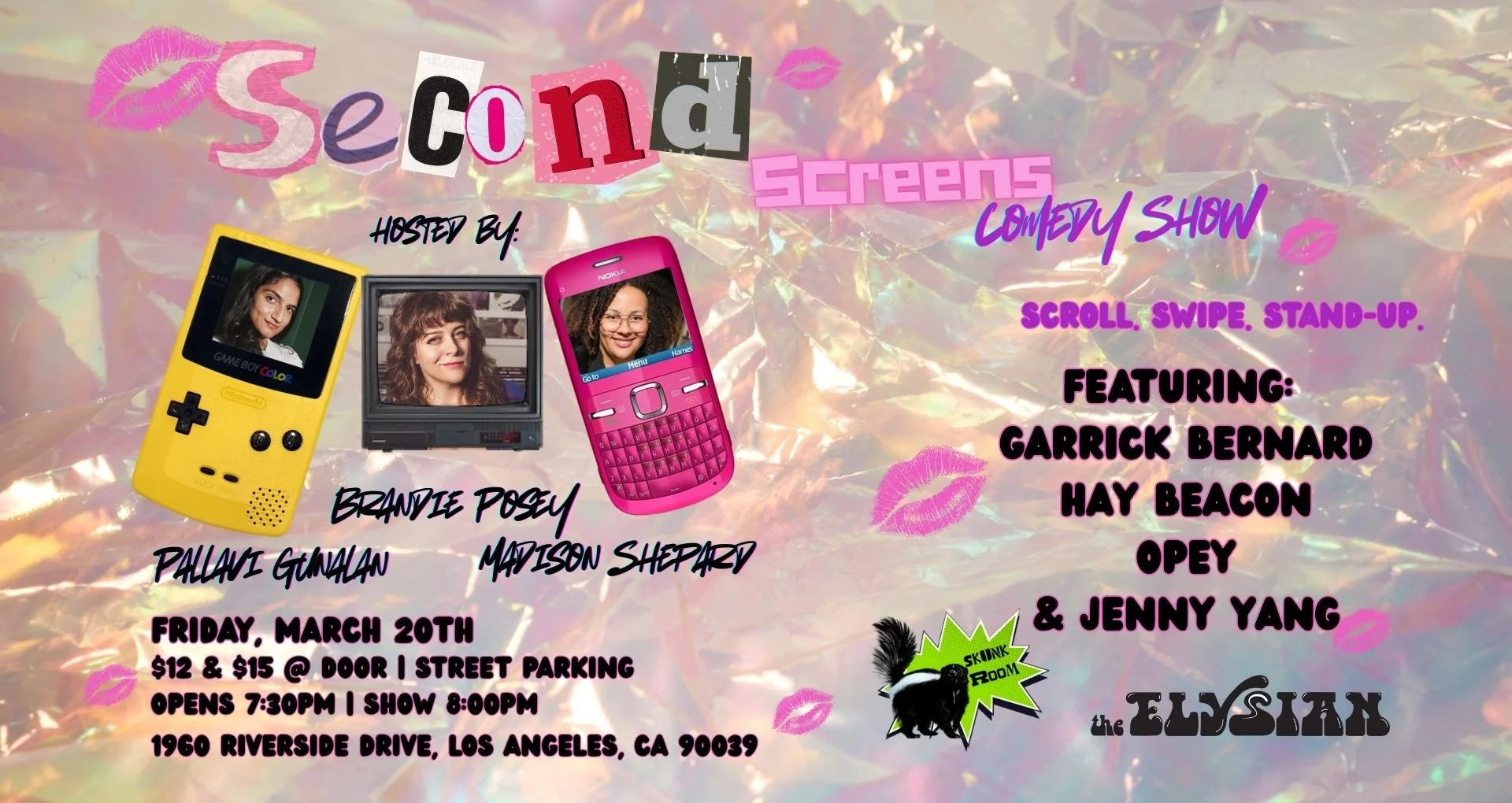 Second Screens Comedy Show is a monthly stand-up showcase at The Elysian Theater’s Skunk Room. Watch some of the best stand-ups in Los Angeles, join the show group chat, eat candy, play interactive games with our hosts, and win silly prizes. All while being on your phone! That’s right! We are the only stand-up show that DGAF if you’re looking at your phone/laptop/Nintendo/tablet/projector/whatever during the show. We not only encourage it, we reward it! So join us at this month's Second Screens Comedy Show and remember it's totally cool to swipe, scroll, stand-up!